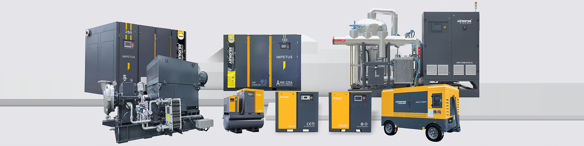 Guangzhou AirHorse Compressor Co., Ltd. is the professional manufacturer and exporter. We are specialized in screw air compressor research, development and production. The main products include screw air compressor, air dryer; air tank and air filter. AIRHORSE screw air compressor adopts advanced technology from Europe, using Germany origin air end, SKF bearing, Siemens/Schneider electrial components and other famous brand main spare parts configuration, which ensure its good stablity, high efficiency, low noise and long life. It's widely used in power generation, ship building, food, package, electronic, cement, textile, paper-making, gas etc.