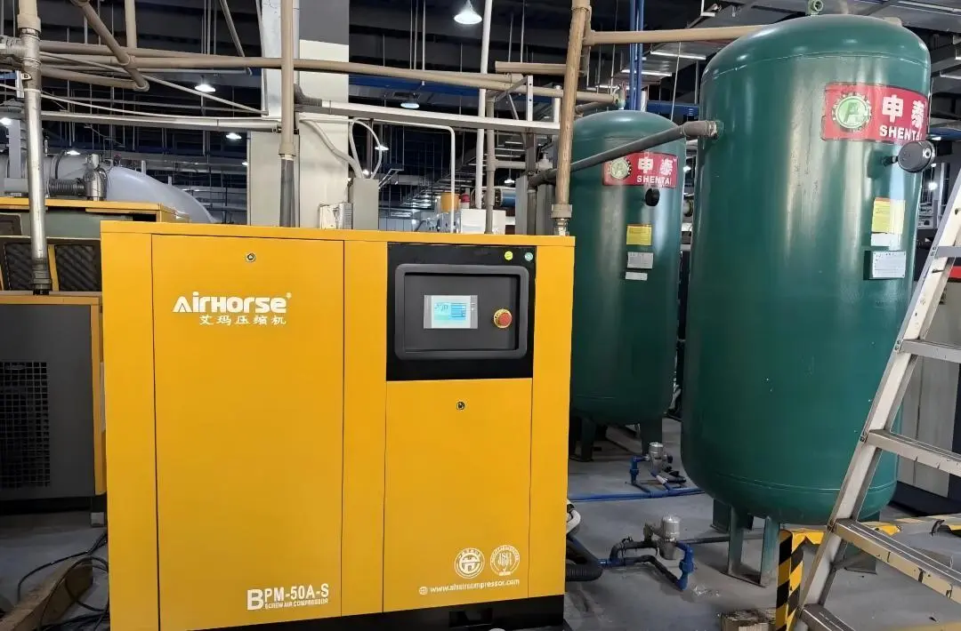 After thorough evaluation, the company adopted a parallel setup of two Airhorse permanent magnet variable speed drive (PM VSD) screw air compressors, supported by air tanks, refrigerated dryers, and filters to form a stable and redundant air supply network.