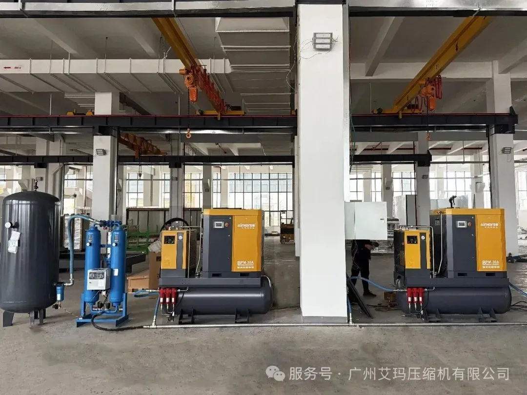 For a glass processing company in Hangzhou with stringent requirements, Airhorse provided a tailored solution: two 22kW Four-in-One Permanent Magnet Variable Frequency Screw Air Compressors dedicated for laser cutting, paired with an adsorption drying system. This ensures a stable, clean, and dry air supply for the laser system.