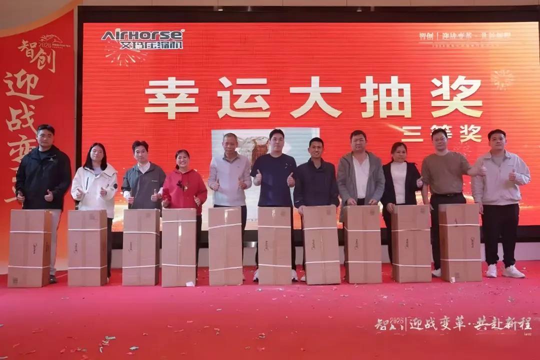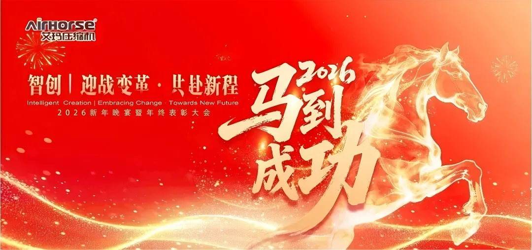 On February 12, 2026, Airhorse (Guangzhou Airhorse Compressor) held its grand 2026 New Year Gala and Annual Awards Ceremony in Zengcheng District, Guangzhou. All colleagues gathered in a warm and enthusiastic atmosphere to review the struggles and gains of 2025 and look forward to a hopeful 2026.